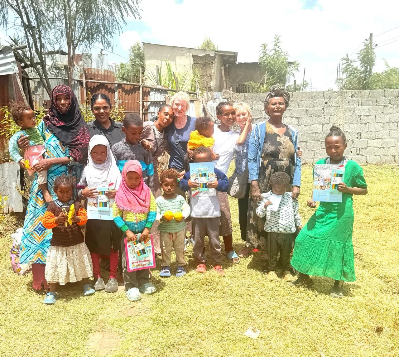 Visiting the safe compound where Tigist and Asnaku live and neighbours Hindya and Tsion joined us.