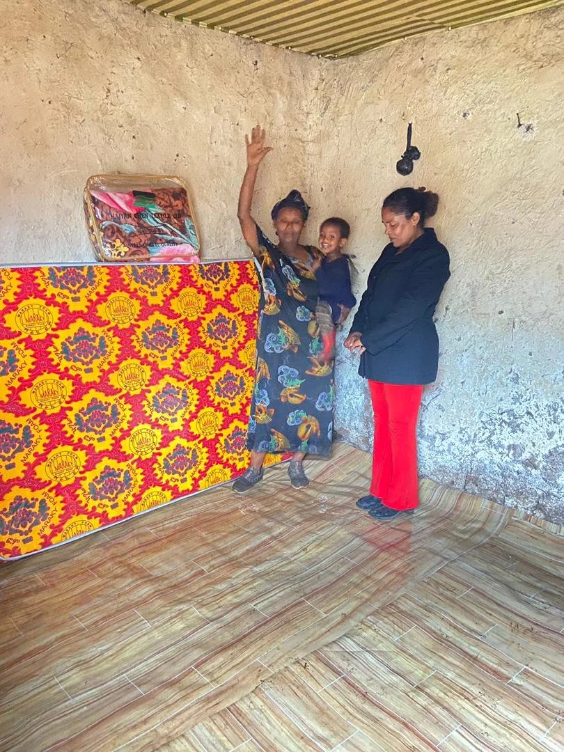Below is grandma, Asnaku, whom Elizabeth found begging, also displaced by the conflicts. When she visited her at home she was breastfeeding her grandson because of lack of food! She was in a very anxious state because she could not afford to pay the room rent and the owner was threatening to evict her. Praise God Charis will now pay the rent and help them monthly until she becomes stronger. She knows Jesus and was praising God for hearing her cries.